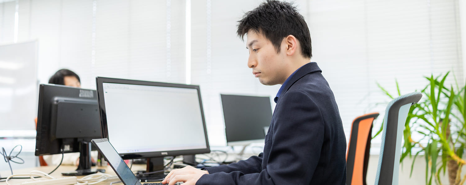 官公庁向けのシステム開発や改修業務に携わることが多く、お客様の要望を受け、現在のシステムに適用し、機能として追加する作業を中心に手がけています。開発の設計、製造、テストまで一貫して行います。